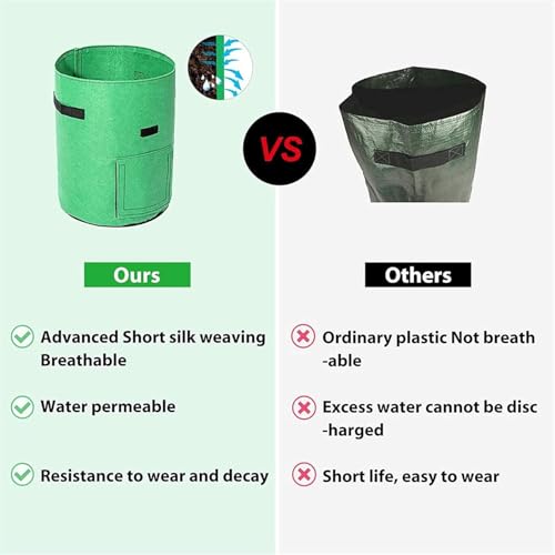 - مقابض معززة لنقل سهل: بفضل المقابض القوية المدمجة، يمكنك نقل نباتاتك بسهولة لتتبع ضوء الشمس أو لحمايتها من المطر، دون القلق من تمزق الكيس.