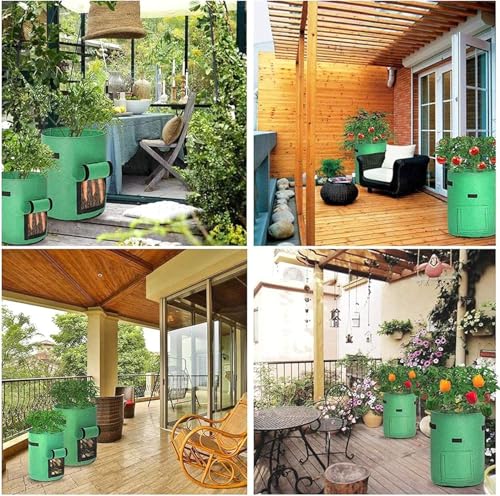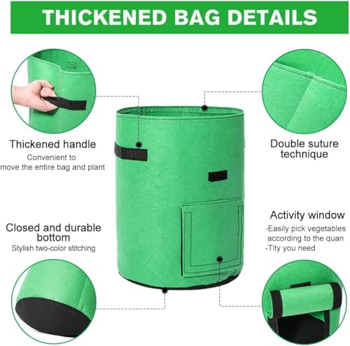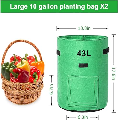 Generic - أكياس زراعة من ميريديان 10 جالون (عبوتان) - حقيبة نمو نباتات قماشية سميكة مع غطاء نافذة للبطاطس والزهور - لون أخضر
