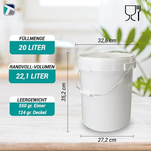 Generic - دلو بلاستيك 20 لتر من ميريديان، آمن للغذاء بمقبض معدني وغطاء محكم الإغلاق، سطل فارغ شديد التحمل للتخزين المنزلي والصناعي، أبيض، قطعة واحدة.