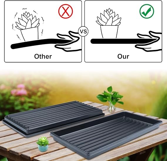 - جودة عالية - صواني بذور الحديقة بدون ثقوب مصنوعة من البوليسترين، ألواح بلاستيكية قوية شديدة التحمل؛ جوانب وحواف معززة، متانة واستخدام طويل الأمد.