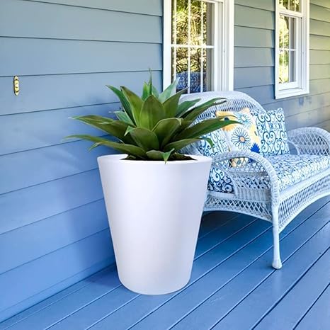 Generic - أصيص للديكور بولي مخروطي الشكل بطول 60سم بدون فتحة تصريف، فاز خفيف الوزن ومتين، أصيص زهور للديكور، أصيص بولي عالي الجوده من ميريديان ديكور، لون أبيض،