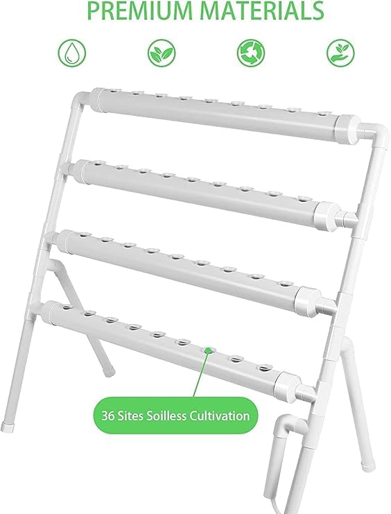 MERIDIAN HYDROPONICS - نظام الزراعة المائية 4 انابيب من بلاستيك PVC 36 موقع مجموعة جانب واحد مع انبوب مياه من ميريديان.