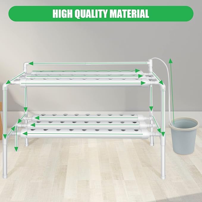 - [جودة PVC فائقة]: الأنابيب مصنوعة من مادة PVC-U الصديقة للبيئة والآمنة غذائياً، وهي متينة ومقاومة لأشعة الشمس، مما يضمن عمرًا طويلاً للنظام ومحصولاً صحياً.
