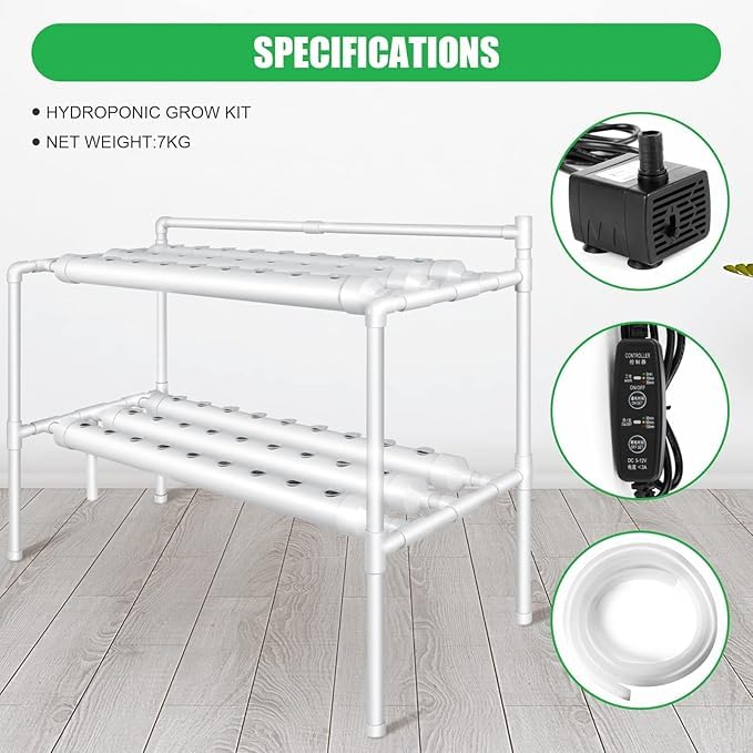 Generic - نظام ميريديان للزراعة المائية 54 فتحة، 6 أنابيب PVC بطبقتين، طقم نمو متكامل مع مضخة مياه، مؤقت ذكي، سلال زراعة ، مناسب لزراعة الخضروات والأعشاب في المنزل والحديقة.