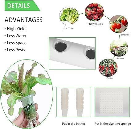 - ★ مجموعة زراعة مائية بعدد 36 موقع زراعة: نظام زراعة مائية مثالية يضم 4 أنابيب وطبقتين مع 36 موقعًا لزراعة النباتات بكفاءة عالية باستخدام ثقافة الماء.