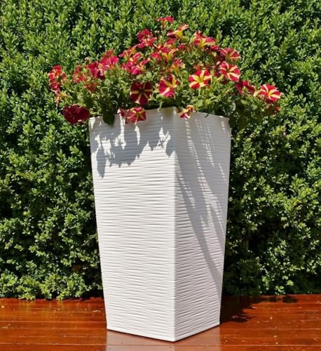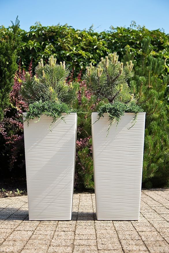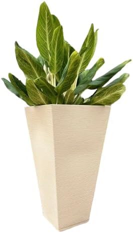Generic - وعاء نباتات طويل من ميريديان - مركن زرع بلاستيك مودرن للديكور الداخلي والخارجي، مقاوم للأشعة فوق البنفسجية، لون بيج بلمسة خطوط عصرية، قطعة واحدة (ارتفاع 105 سم)