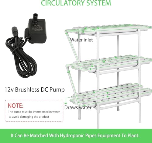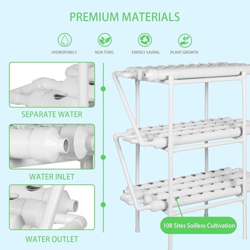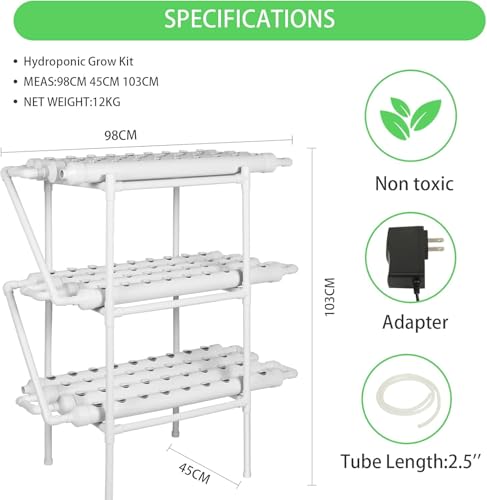 Generic - نظام زراعة مائية عمودي من ميريديان – 3 طبقات، 12 أنبوب، 108 موقع زراعة، مع مضخة مياه ومؤقت، سلال زراعة وإسفنج، مناسب للخضروات والأعشاب