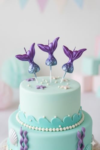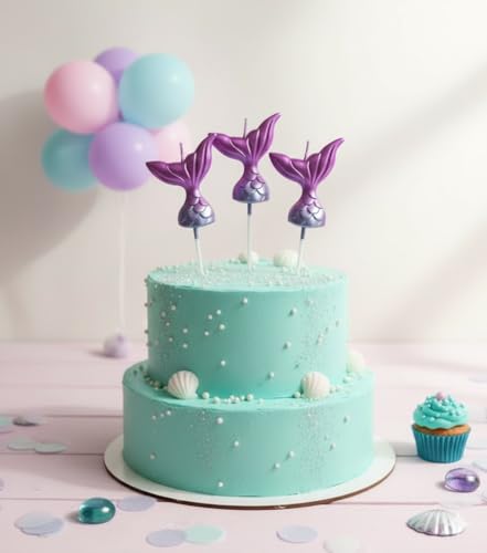Generic - شموع حفلات أعياد الميلاد على شكل ذيل حورية البحر، أرجواني ميتالك، 3 قطع