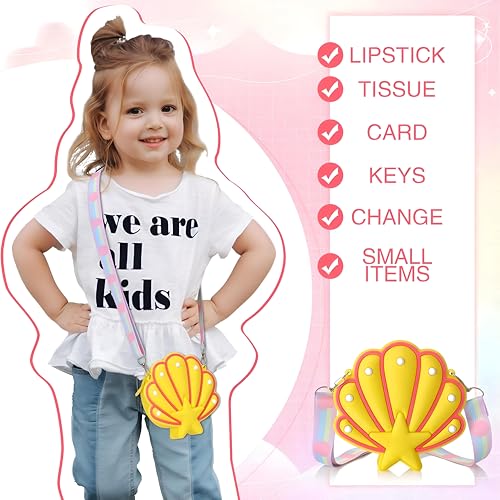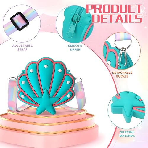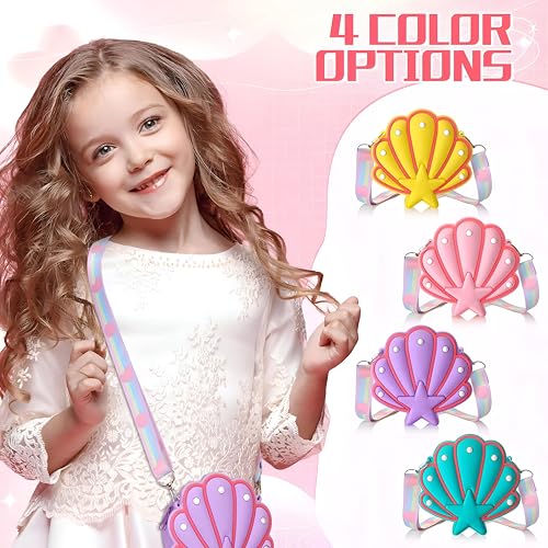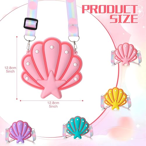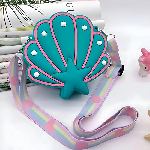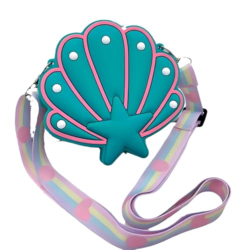 Generic - حقيبة يد من السيليكون بتصميم حورية البحر - 4 حقائب يد رائعة بتصميمات صدف ونجم البحر، احزمة قابلة للتعديل، الالوان: زهري وارجواني واخضر واصفر (ازرق)