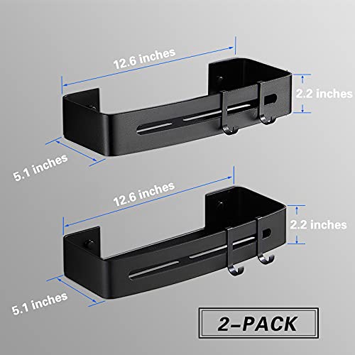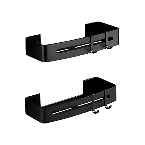 MERNZIKKO - حامل زاوية لاصق للدش بمستويين من الألومنيوم، منظم زاوية للحمام، رف تخزين يثبت على الحائط للعمل والمطبخ والتواليت بدون ثقب من ميرنيزيكو، أسود