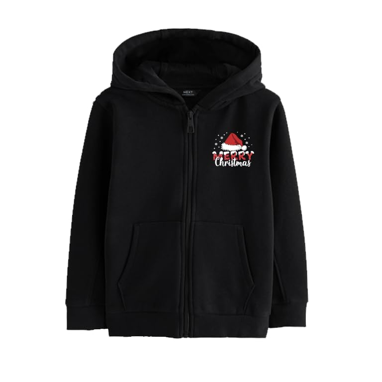 Generic - سويت شيرت بغطاء للرأس وسوستة بلون اسود من ميري كريسماس، سويت شيرت بنمط عطلة الشتاء مع قبعة سانتا وجيوب امامية، 9-12 سنة)