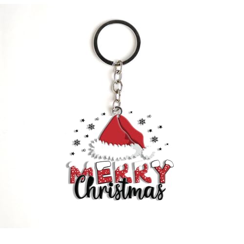 Generic - سلسلة مفاتيح بتصميم قبعة سانتا حمراء، حلقة مفاتيح معدنية بطابع العطلات، ديكور احتفالي الشتاء
