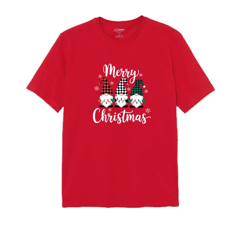 Generic - تي شيرت عيد ميلاد سعيد من القطن الاحمر مع طباعة جنوم احتفالي، تصميم جرافيك لموسم الشتاء مقاس (3-6 سنوات)