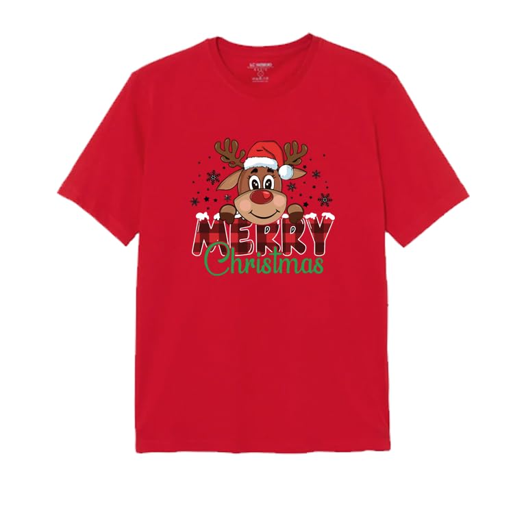 Generic - تي شيرت Merry Christmas، تي شيرت قطن احمر للعطلات بتصميم حيوان الرنة، طباعة رسومات احتفالية شتوية مقاس (9-12 سنة)