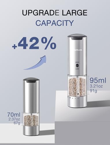 - تصميم أنيق وهيكل متين - مصنوعة من الستانلس ستيل الفاخر، تتميز مجموعة مطحنة الفلفل الكهربائية بتصميم أنيق وعصري يكمل جمال أي مطبخ. يضمن هيكله القوي سنوات من الاستخدام الموثوق به، بينما توفر الأزرار الكبيرة في الأعلى تجربة مريحة. سواء كنت تطحن الفلفل الطازج لعجة الإفطار أو تضيف لمسة إلى شريحة اللحم المسائية الخاصة بك، فإن مطحنة الفلفل هذه، بجسمها المصنوع من الستانلس ستيل، هي الإضافة المثالية لترسانة الطهي الخاصة بك