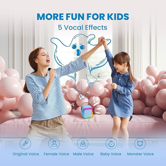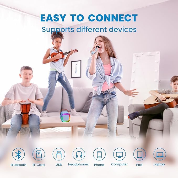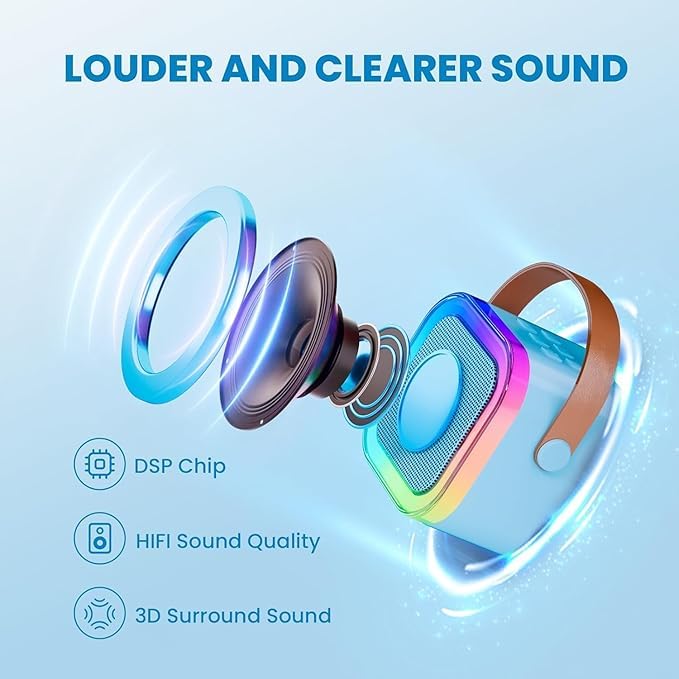 MERV - مكبر صوت كاريوكي محمول مع ميكروفون لاسلكي وإضاءة ار جي بي وصوت بدون فقدان من ميرف، موديل K-22 (لون أزرق)
