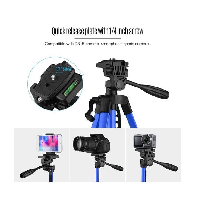 MERV - حامل ثلاثي القوائم خفيف الوزن ومتين للكاميرا والموبايل من ميرف (طول 1.20 متر) - لون أزرق، موديل 3366