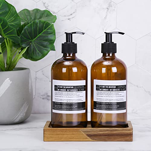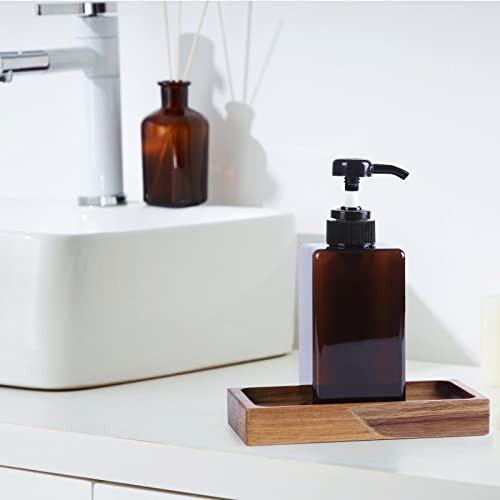 MERVAGIN - صينية صابون للمطبخ بقاعدة خشبية من ميرفاجين حامل خشبي بتصميم ريفي والحمام للزجاجات والنباتات والشموع وديكور المجوهرات بني مستدير