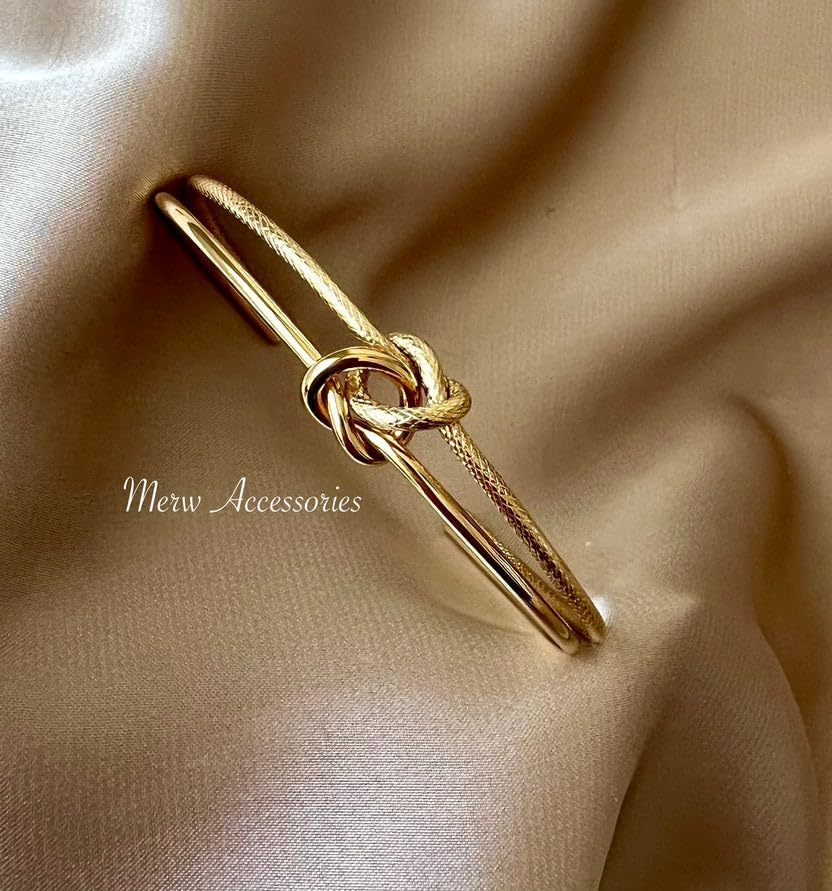 MERW ACCESSORIES - سوار حلقي مزدوج من الستانلس ستيل بلون ذهبي ومقاس واحد من ميرو اكسيسوريز