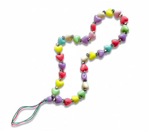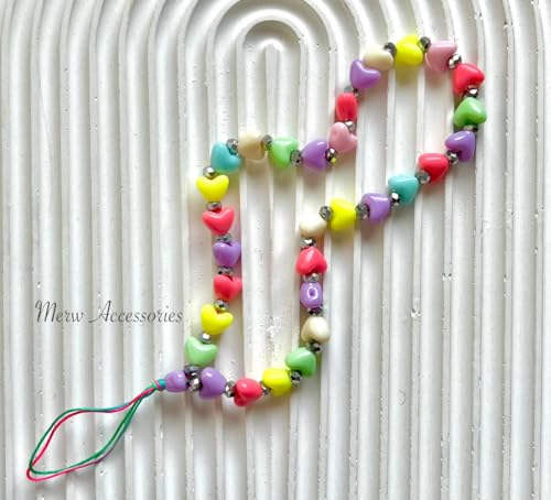 MERW ACCESSORIES - سلسلة موبايل قصيرة مزيج من القلوب والكريستال الفضي من اكسسوارات ميرو