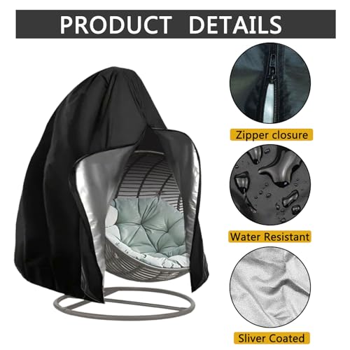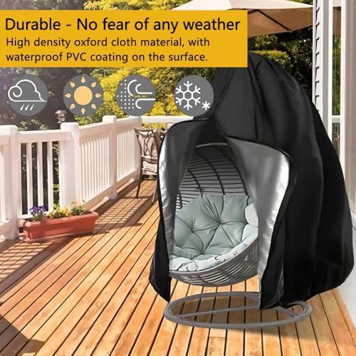 MerwDeeyt - غطاء كرسي متارجح خارجي مقاوم للماء بتصميم بيضة من ميروديت، غطاء كرسي معلق للفناء مقاوم للرياح مع سحاب ورباط سحب (مقعد مفرد 75 انش ارتفاع × 45 انش عرض)