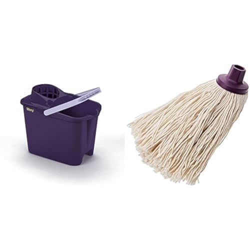Mery - جردل مع مصفاة، أرجواني وليموني، 31.5 × 25.5 × 39 سم + ممسحة ميري 0402.41 قطن 100% مع رأس كبير جدا، من ميري