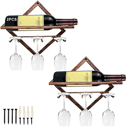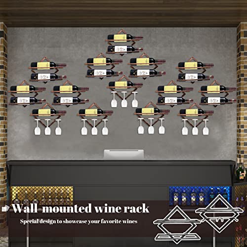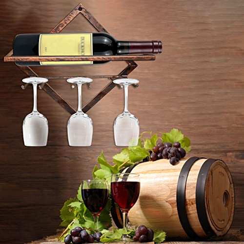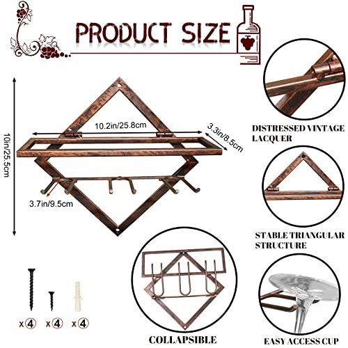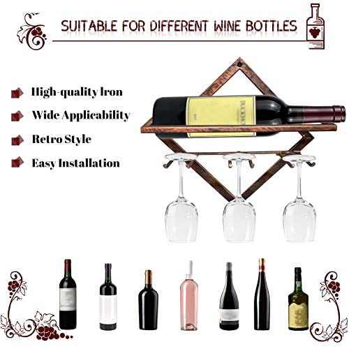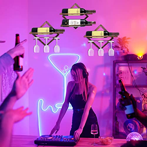 MERYSAN - 2 × رف معدني يثبت على الحائط للزجاج، منظم رف عصير معلق على الحائط من النحاس الأصفر العتيق مع 3 حوامل للزجاجات، رف زجاجات العصير للمطبخ والبار وديكور الحائط من ميريسان