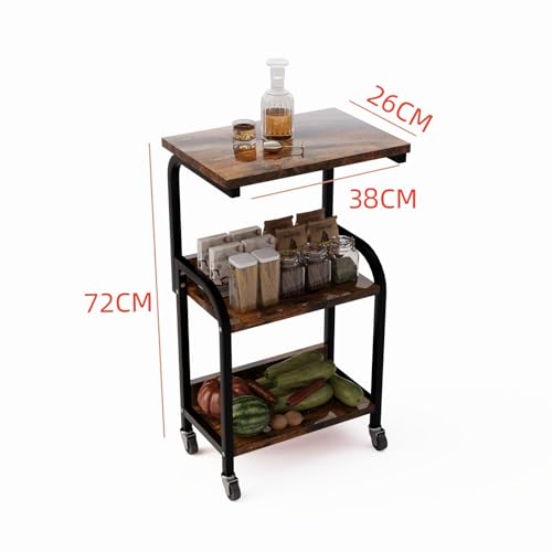 Merytes - عربة مطبخ من 3 طبقات، عربة رف مطبخ، هيكل مفتوح، رف رف، تخزين الفراغات، رف خشبي، ستيل، متعدد الوظائف، رف تخزين، منظم
