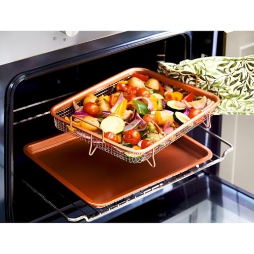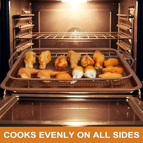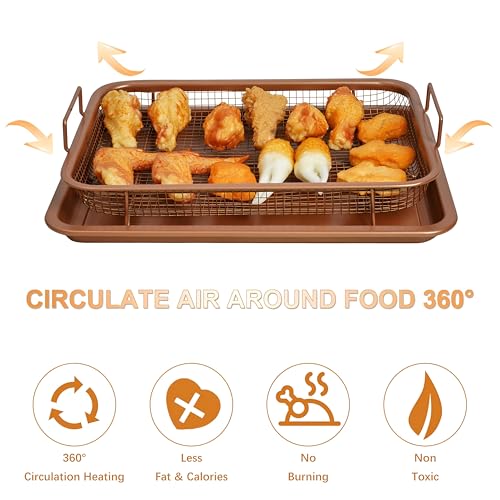 Generic - مقلاة هوائية شبكية - مجموعة سلة وصينية لرفع مستوى الخبز في الفرن وتحقيق ملمس المقلي بالهواء في الفرن القياسي، أمنة للاستخدام في غسالة الصحون، ستيل عالي الجودة للاستخدام طويل الأمد