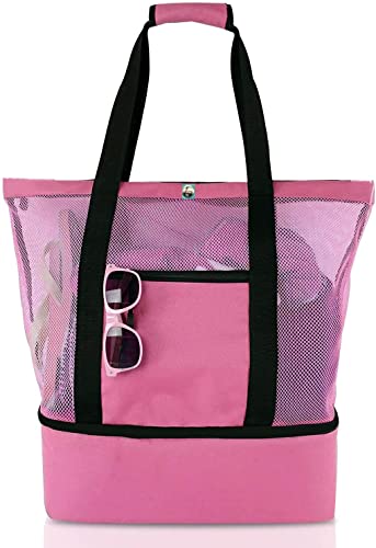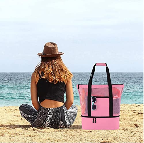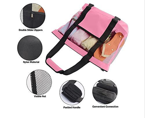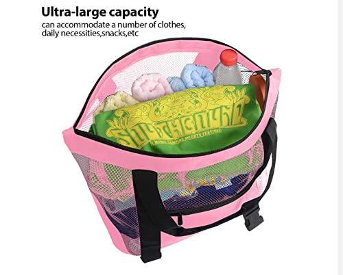 Generic - شنطة يد كبيرة توت متعددة الاستخدامات شبكية ومناسبة للحمل على الكتف كبيرة السعة وسريعة الجفاف للشاطئ وحوض السباحة, زهري
