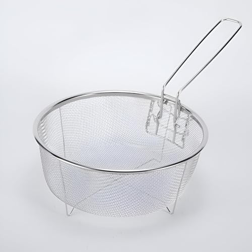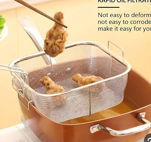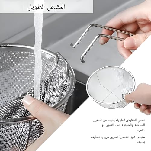 - مصنوعة من شبكة من الستانلس ستيل عالي الجودة مع إطار سلكي معزز، تضمن سلة القلي العميقة هذه المتانة ومقاومة الصدأ وأداء ثابت يدوم طويلاً حتى مع الاستخدام المتكرر في المطبخ.