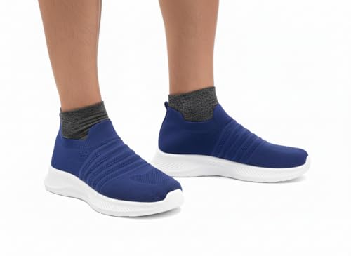 Generic - " حذاء رياضي شبكي منسوج سهل الارتداء - خفيف الوزن ومريح للمشي والاستخدام اليومي - متوفر باللوان اسود و رصاصي و كحلي مقاسات من 41/45" (أزرق, 45)