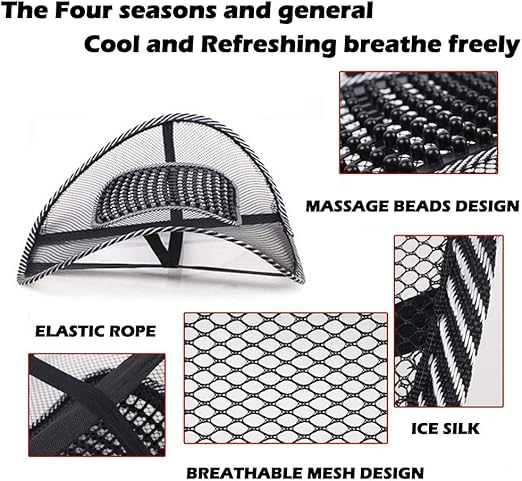 Generic - دعامة ظهر شبكية مع خرز للتدليك تصميم مريح لتخفيف آلام اسفل الظهر لمقعد السيارة وكرسي المكتب والكرسي المتحرك مقاس واحد