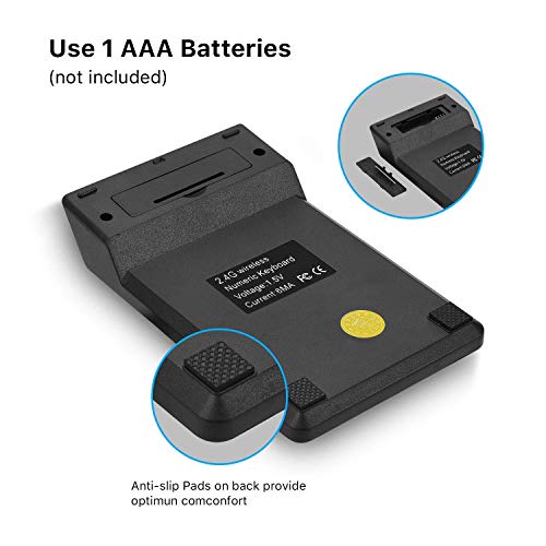 MESHIV - كيبورد لاسلكي 18 مفتاح 2.4 جيجاهرتز بمنفذ USB وارقام بدون صوت بتصميم محمول للاب توب والكمبيوتر المكتبي والتابلت من ميشيف