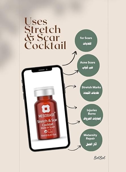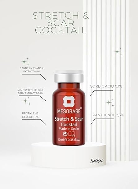 Mesobase - مزيج لعلاج علامات التمدد والندبات وندوب حب الشباب والبقع وإصابات الحروق والخدوش وعلامات ما بعد الولادة من ميسوثيرابي، إسباني المنشأ (عبوة واحدة، 10 مل)