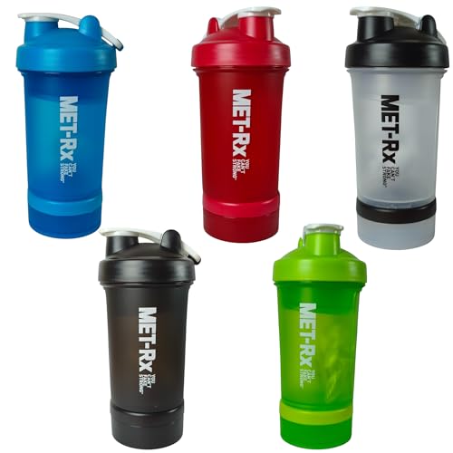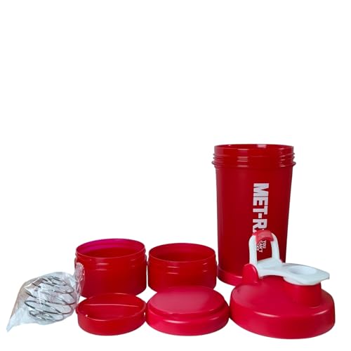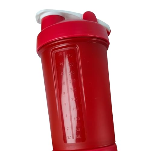 M D Stay Fit - زجاجة شيكر بروتين ستاي فيت مع كرة خلط من ميت-ار اكس من ام دي، كوب مخفوق مضاد للتسرب لصالة الالعاب الرياضية مع تخزين مسحوق وصينية حبوب دواء خالية من البيسفينول ايه (احمر)