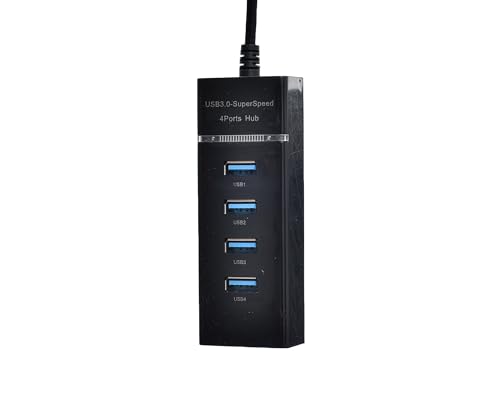 Generic - موزع USB معدني بأربعة منافذ بحجم رفيع ومؤشر ليد، 30 سم، أسود