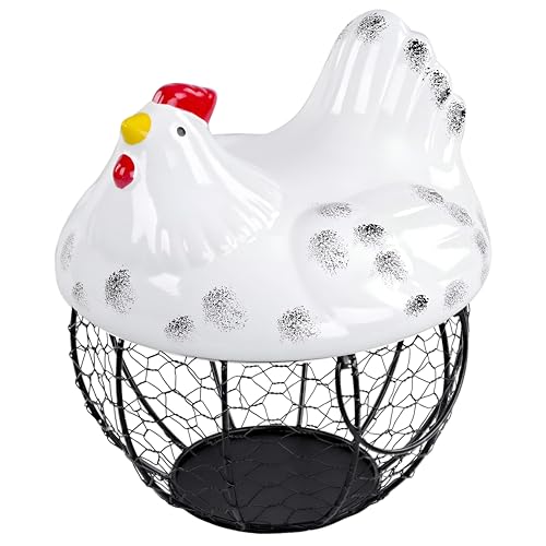 generic - سلة معدنية - سلة لطيفة على شكل دجاجة مع غطاء بلاستيكي لتخزين البيض وتقديمه في الحفلات والعطلات مثل شام النسيم والافطار