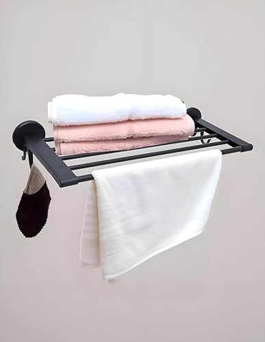 Generic - رف حمام معدني - حامل منشفة مثبت على الحائط بخطافين مزدوجين، طلاء مقاوم للتآكل، مثالي للبيئات ذات الرطوبة العالية