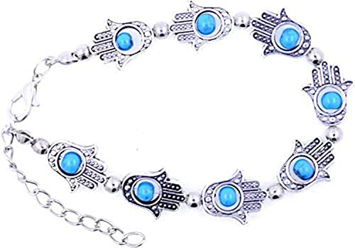 Generic - سوار معدني مجموعة من الكفوف مع الخرز اللأزرق، للنساء