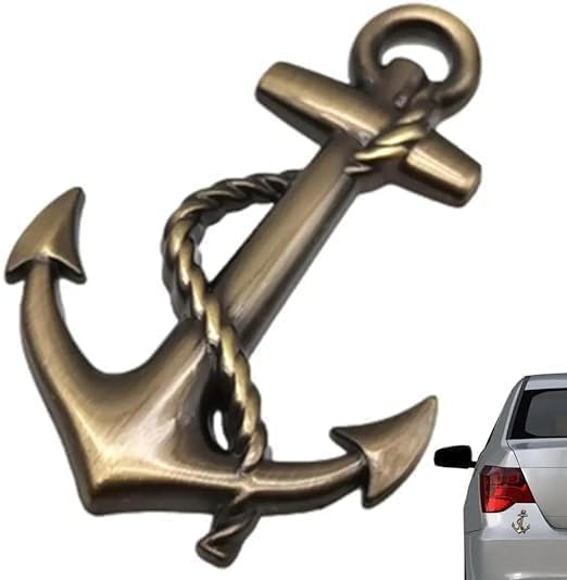 Generic - ملصقات سيارة معدنية بتصميم مرساة السفينة، ملصق جسم عالمي ذهبي ثلاثي الابعاد بلون نحاسي، شعار جانبي معدني، ملصق الباب الخلفي - SACAR