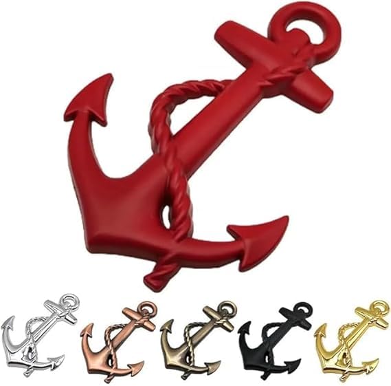 Generic - لصقات سيارة معدنية بتصميم مرساة السفينة، ملصق جسم عالمي ذهبي ثلاثي الابعاد بلون احمر، شعار جانبي معدني، ملصق الباب الخلفي - SACAR