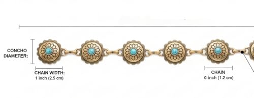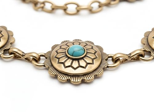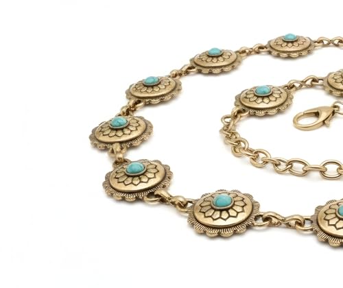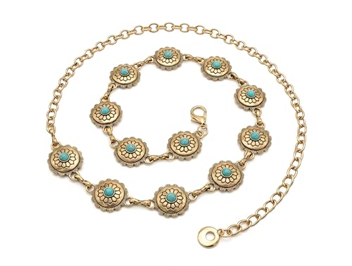 Generic - حزام سلسلة معدني بزخارف زهور وأحجار فيروزية، ذهبي عتيق، تصميم بوهيمي، للخصر