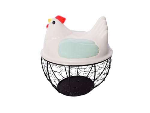 Generic - سلة بيض معدنية على شكل دجاجة، أبيض وأخضر مينت