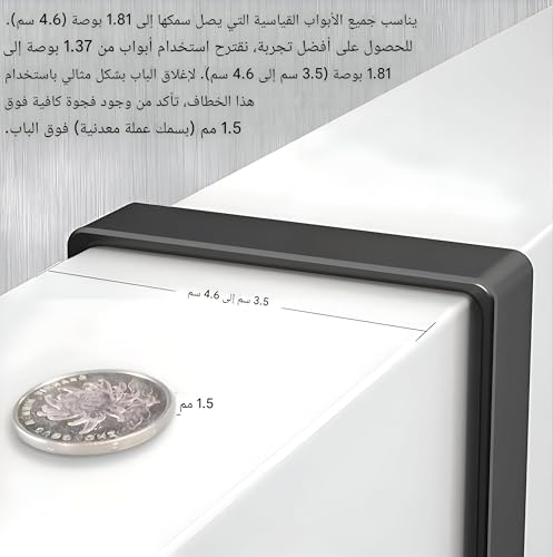 - يتميز خطاف الباب بمقاس كبير 16 انش × 9 انش (42 سم × 23 سم) وهو مصمم ليناسب جميع الأبواب القياسية بسمك 1.81 انش (4.6 سم). مثالية للأبواب بين 1.38 انش إلى 1.8 انش (1.38 انش إلى 1.8 انش)، مما يضمن وضعًا آمنًا وعمليًا.