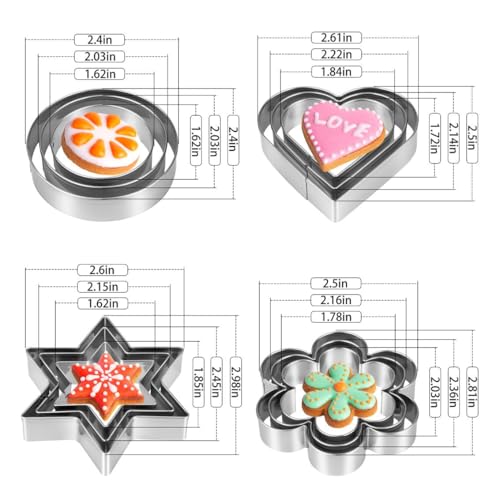 KnmyLife - طقم قطاعات الكوكيز معدنية مكون من 12 قطعة من الفولاذ المقاوم للصدأ بـ 3 قلوب وقواطع الكوكيز 3 نجوم و3 قطاعات الكوكيز على شكل زهور و3 قطع دائرية لعيد الحب والكريسماس والعطلات