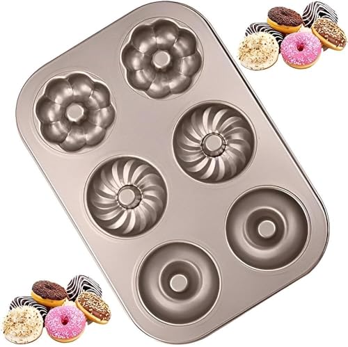 Generic - صينية دونات معدنية - صينية خبز غير لاصقة بـ 6 تجاويف للدونات الموحدة والمافن والكعك الصغير، هيكل متين من الستيل الكربوني