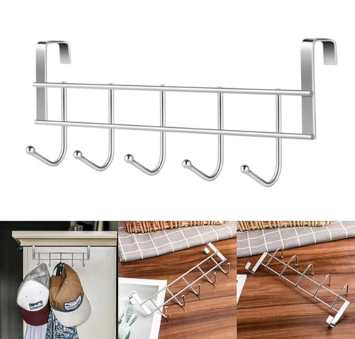 Bedaya - شماعة باب معدن لتعليق الملابس على الباب وتخزين فوط الحمام موفرة للمساحة وتحتوي على 5 خطافات