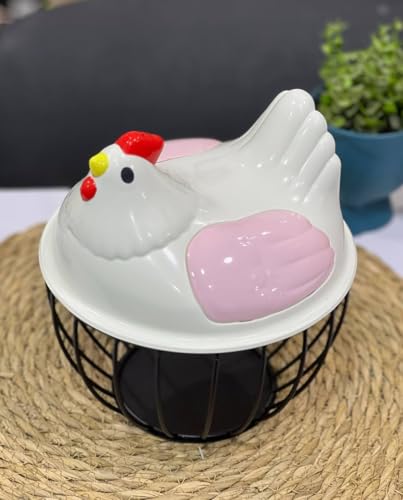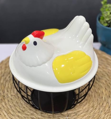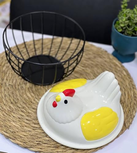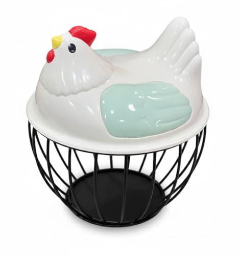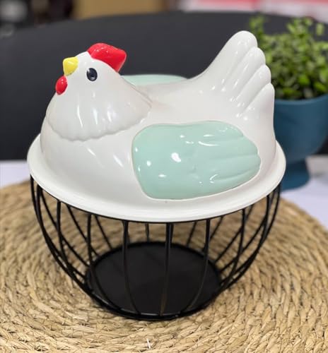 Generic - سلة بيض معدنية بغطاء بلاستيك – تصميم على شكل فرخة راقدة على البيض بسعة 30 بيضة R