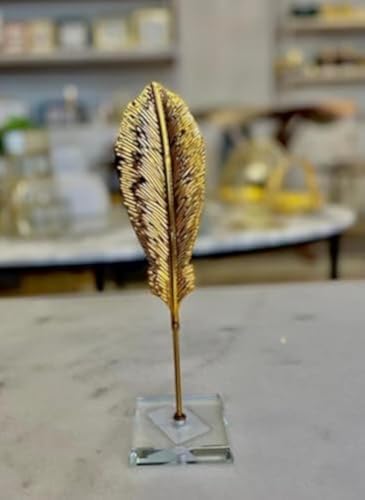 - ديكور أنيق: يتميز منحوت الريش المعدني هذا بطلاء ذهبي مع لمسات من الكريستال على قاعدة اكريليك شفافة لإضفاء لمسة من الفخامة على أي غرفة.